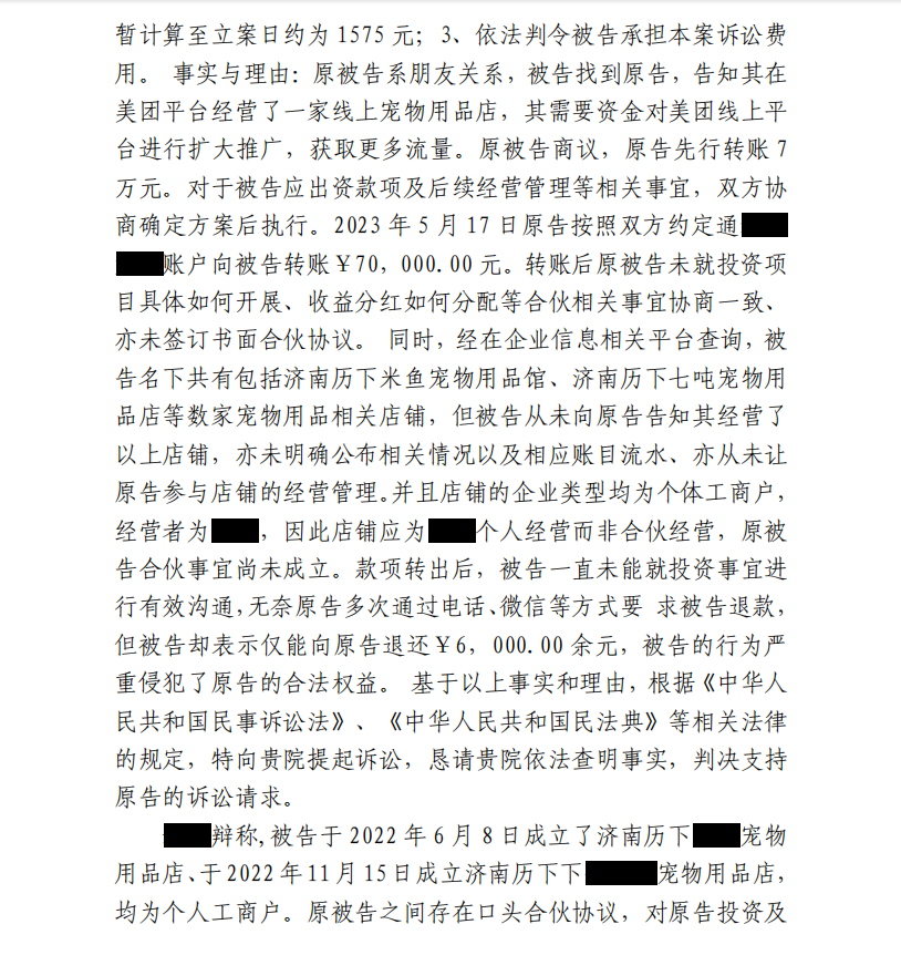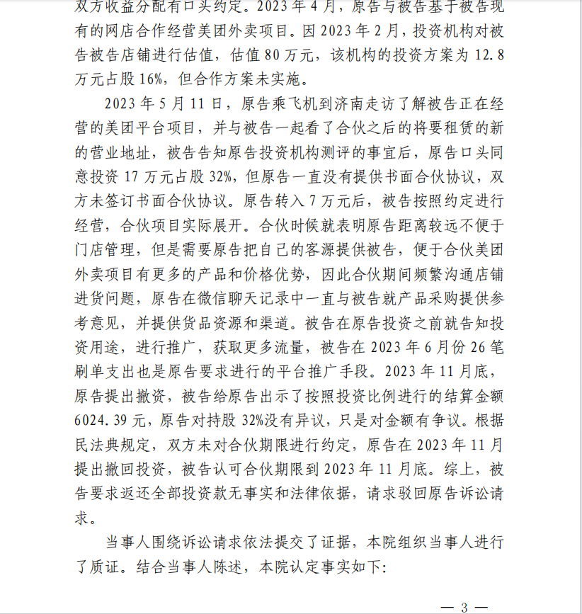 曹婷婷律师代理原告胜诉:合伙关系未成立,法院判决被告全额返还7万元投资款并支付利息。