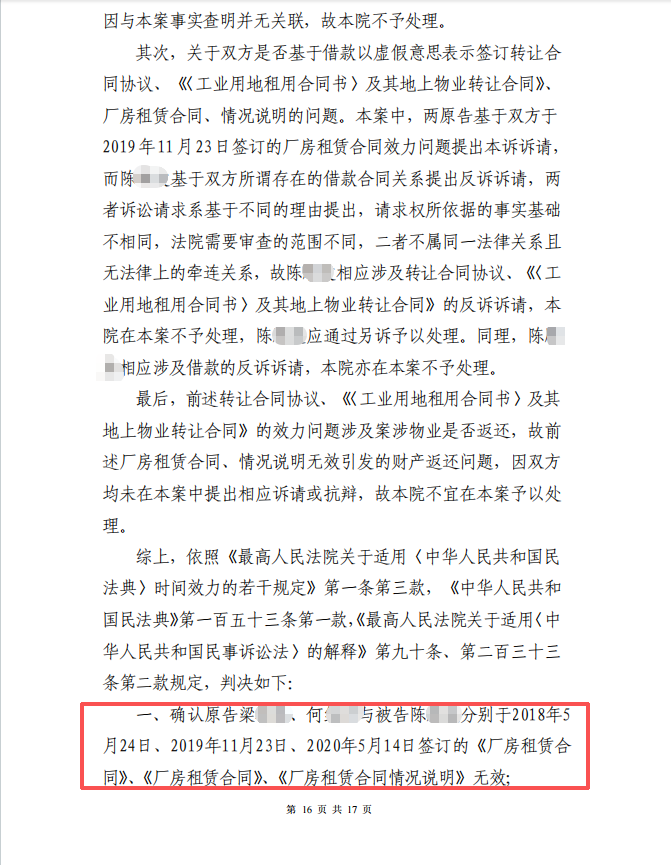 法院最终判决确认案涉三份租赁合同无效,驳回陈某的其他反诉诉求,维护了委托人的合法权益。