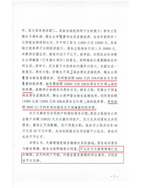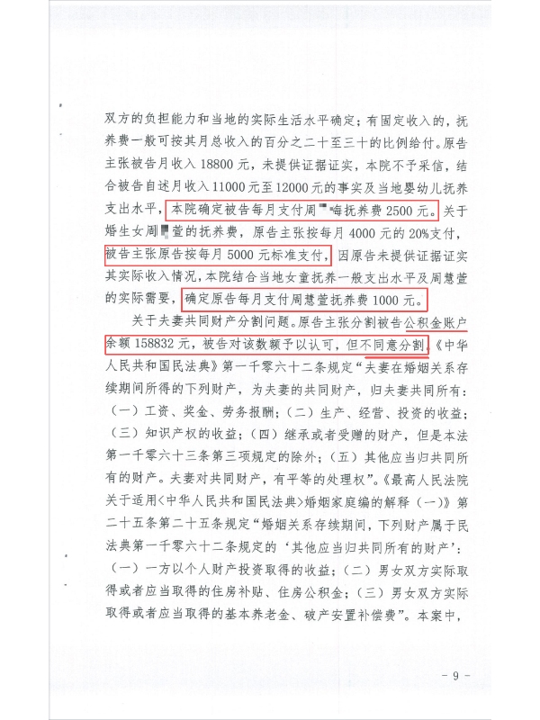 庭审中,针对抚养权争议,律师团队紧扣 “子女利益最大化” 原则:长女已满 8 岁且明确愿随父亲生活,便转而争取 “合理抚养费”(最终法院判贾女士每月付 1000 元,远低于男方要求的 5000 元);幼子尚处婴幼儿阶段且长期随贾女士生活,团队强调 “婴幼儿需稳定抚养环境” 及男方 “加班酗酒、无精力照料” 的劣势,最终法院判幼子由贾女士直接抚养,男方每月支付 2500 元抚养费。财产分割方面,律师援引《民法典》相关规定,明确男方公积金属共同财产,法院支持贾女士分得 79416 元;针对男方主张的外债,因无证据佐证,法院未予采信。