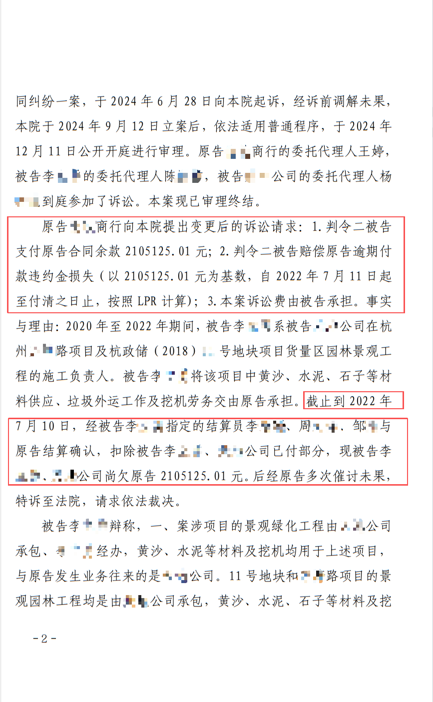案件核心源于2020年至2022年的业务合作:某建材商行应要求为杭州某路项目、杭政储地块项目等供应黄沙、水泥等建材,并提供挖机租赁、垃圾外运服务。经李某指定的工作人员结算确认,扣除已付款项后,商行主张尚欠210万余元。但催讨无果后,商行起诉两被告,却遭遇推诿——李某称自己是某环境建设公司经办人,责任应由某环境建设公司承担;某环境建设公司则辩称李某是实际施工人,与商行无直接合同关系,不应担责。