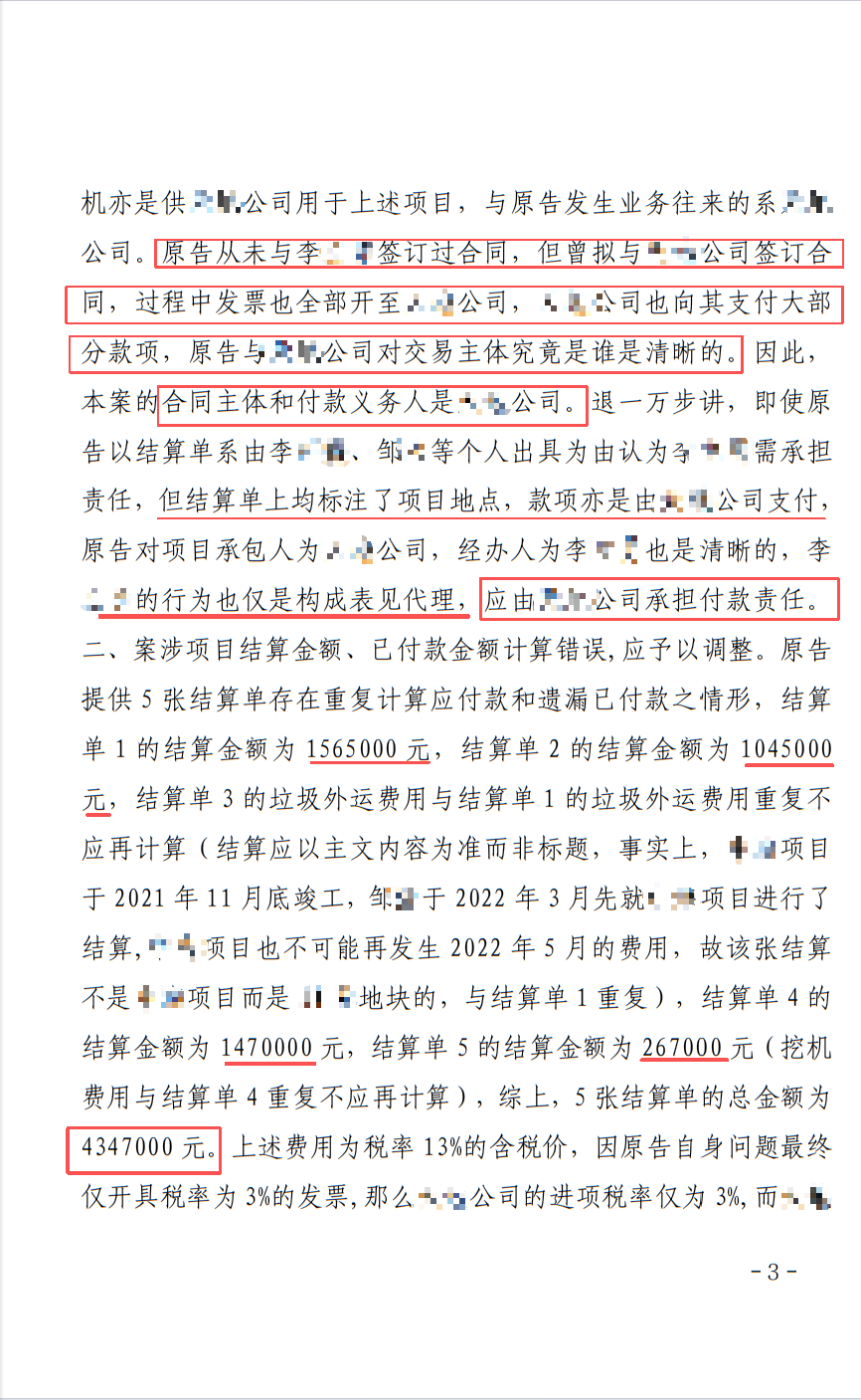 案件核心源于2020年至2022年的业务合作:某建材商行应要求为杭州某路项目、杭政储地块项目等供应黄沙、水泥等建材,并提供挖机租赁、垃圾外运服务。经李某指定的工作人员结算确认,扣除已付款项后,商行主张尚欠210万余元。但催讨无果后,商行起诉两被告,却遭遇推诿——李某称自己是某环境建设公司经办人,责任应由某环境建设公司承担;某环境建设公司则辩称李某是实际施工人,与商行无直接合同关系,不应担责。