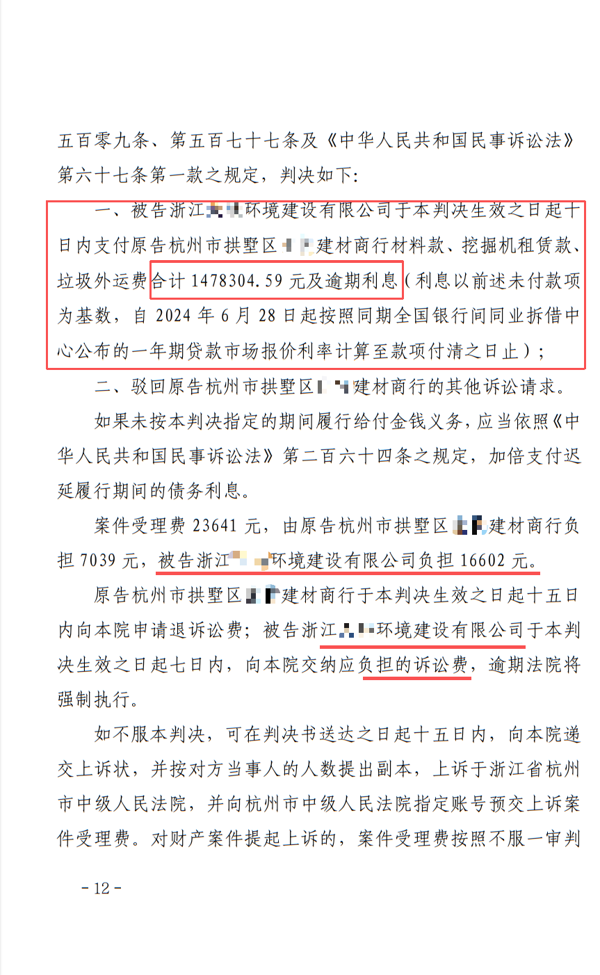 最终,杭州市拱墅区人民法院采纳王婷律师的核心代理意见,认定案涉结算单合法有效,李某构成表见代理,某环境建设公司为合同相对方及付款主体。法院核算确认总应付款4581947元,扣除已付款3043642.41元及双方确认的6万元土方处置费后,判决某环境建设公司支付商行1478304.59元,并自2024年6月28日起按LPR支付逾期利息,驳回商行对李某的诉求及其他超出部分请求。